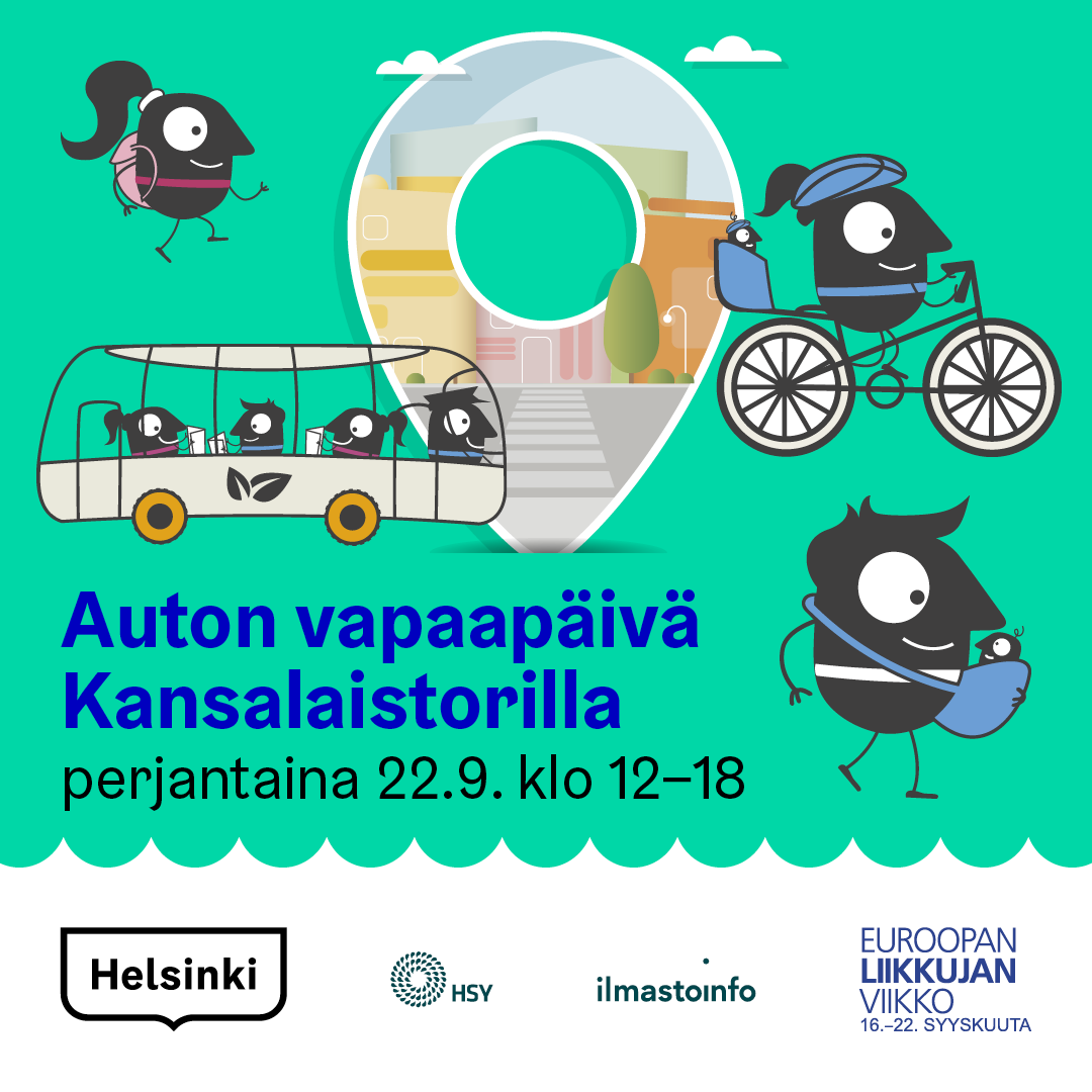 Jätä auto vapaalle ja tule mukaan kestävän liikkumisen teematapahtumaan Kansalaistorille perjantaina 22.9. kello 12–18. Tapahtumassa on mahdollisuus huollattaa pyörä maksutta syyskuntoon sekä testiajaa erilaisia sähköpyöriä. Perheen pienimmille on luvassa muun muassa pyörätaitorata ja pyöräntuunauspiste. Seikkailumieliset voivat testata taitojaan Ilmastoviisas liikkuja -suunnistuspelissä. Paikalla on myös hodarifillari, joka tarjoilee ilmaiset vegehodarit ja mehut 300 ensimmäiselle.