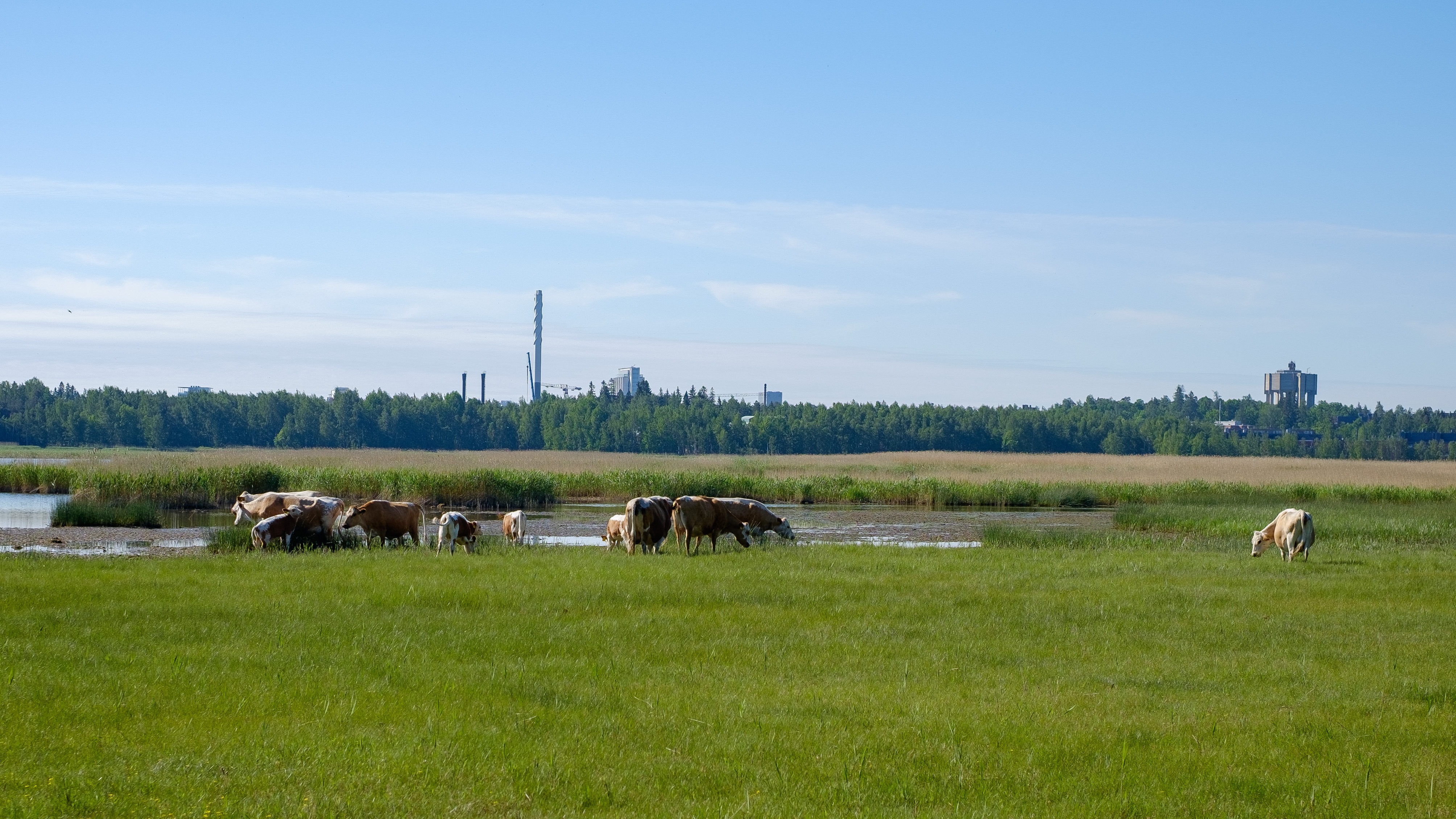 Vanhankaupunginlahden ruovikossa laiduntaa myös lehmiä ja lampaita maisemanhoitotehtävissä ja näistä saattaa nähdä vilauksia esimerkiksi Viikin ja Lammassaaren lintutorneista.