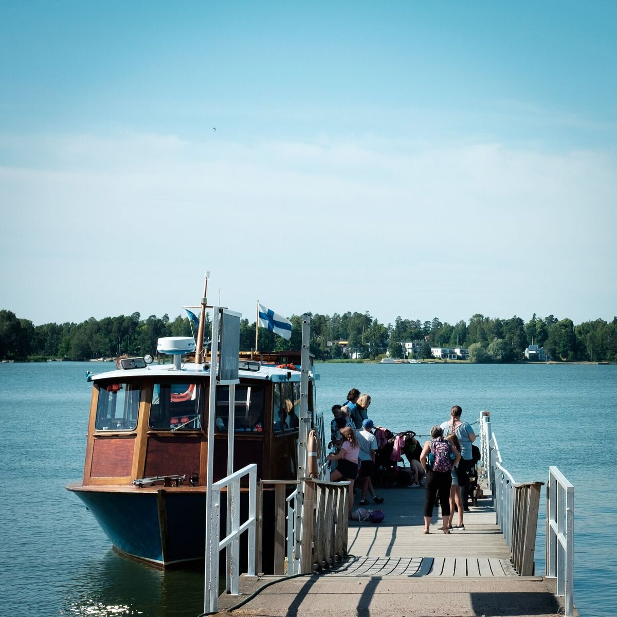 Lautta Mustasaareen kulkee noin tunnin välein ja helteisinä päivinä ruuhkaan kannattaa varautua ainakin suosituimmilla aamupäivän lähdöillä sekä alkuiltapäivän paluumatkoilla. Meidän suurimmat jännityksen aiheet kohdistuivat rattaiden mahtumiseen lauttaan, mutta huoli osoittautui turhaksi: yhteysveneeseen mahtui helposti ainakin kymmenet rattaat ja kulku laiturilta veneeseen oli helppoa.