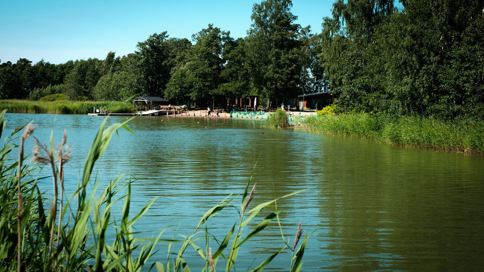 Mustasaaressa on myös hiekkaranta suihkuineen ja pukutiloineen. Huomaa kuitenkin, että uimaranta sijaitsee sinilevän kannalta otollisessa paikassa ja saaren rannassa tavataan sinilevää aika ajoin. Tämä kannattaa ehkä mainita lapselle, jos lupailee uintimahdollisuutta suurempien pettymysten välttämiseksi. Kahvilan ilmoitustaululta löytyi hyvä ohjeistus sinilevätilanteesta. Rannalle oli viritetty aitaa aivan rannan tuntumaan, vaikka kyseisenä päivänä sinilevävaaraa ei ollut. Järkeilimme aidan ainakin osin estävän hanhien maihinnousua ja kiittelimme sitä myös lasten takia: eväiden syönti rannalla sujui rauhallisesti kun suoraan veteen ei päässyt juoksemaan kaikkialta.