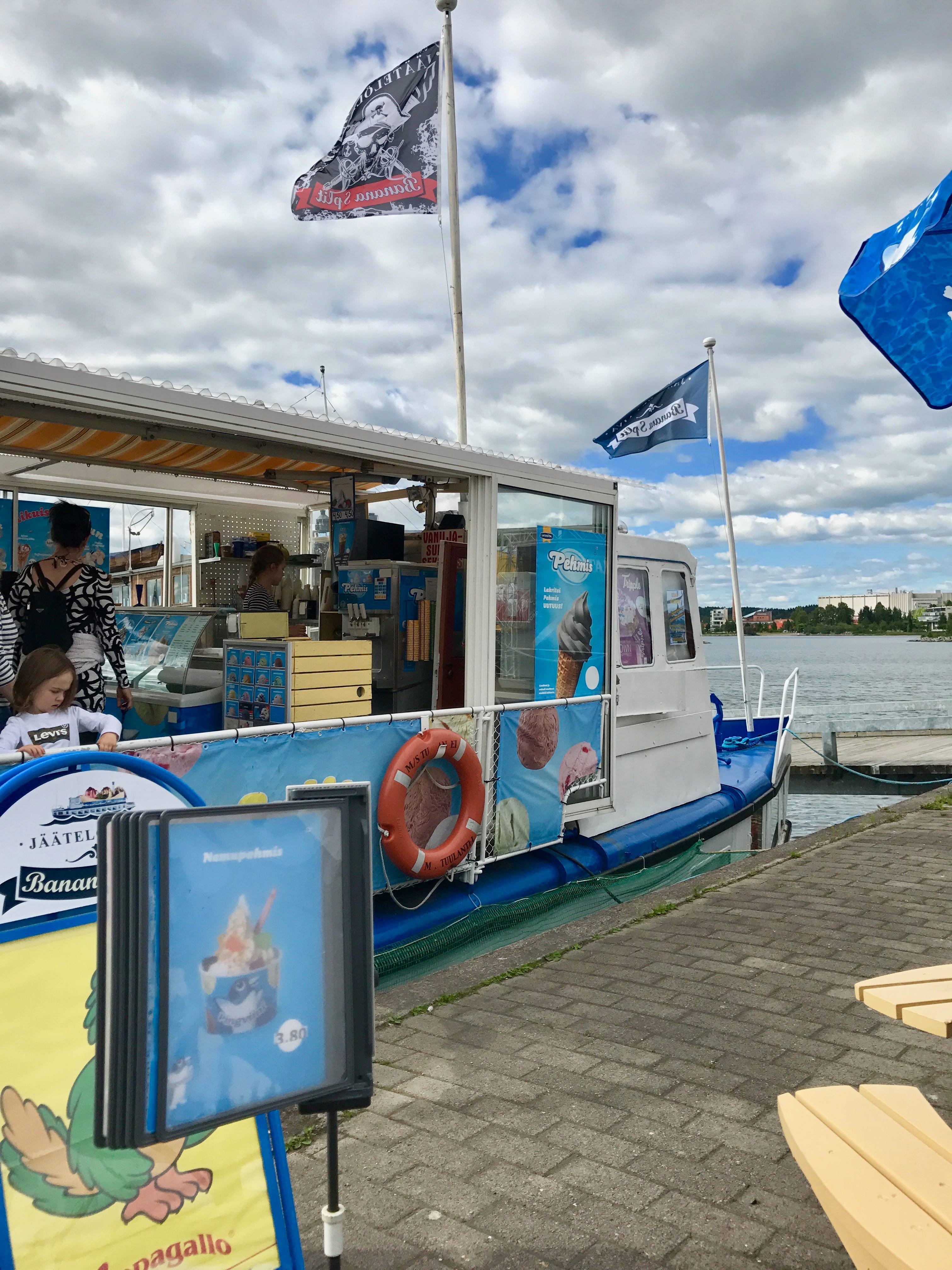Jäätelölaiva Vesijärven rannalla Lahden satama-alueella kesällä 2017.[/caption]