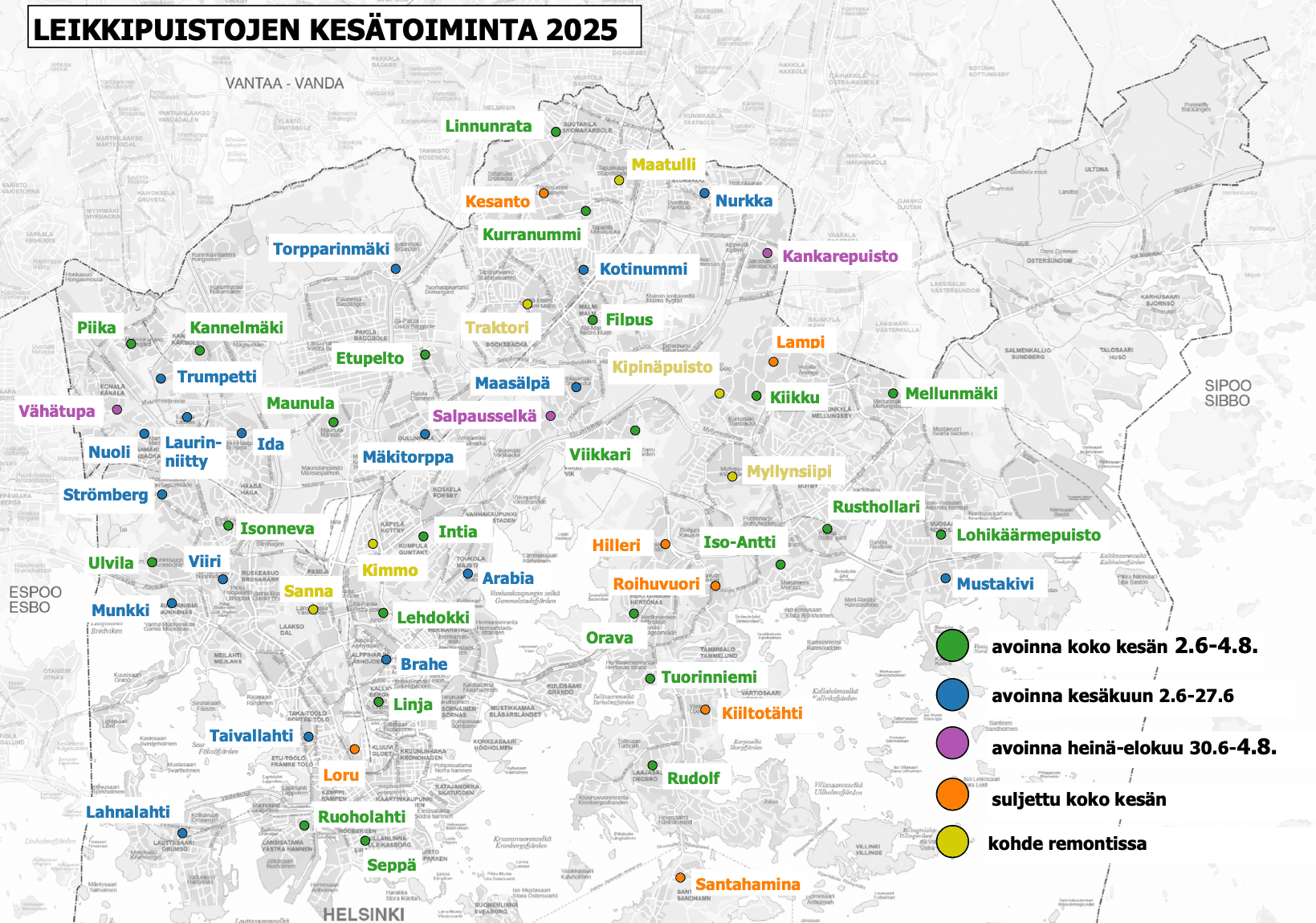 - Leikkipuisto Mellunmäki (avoinna koko kesän)