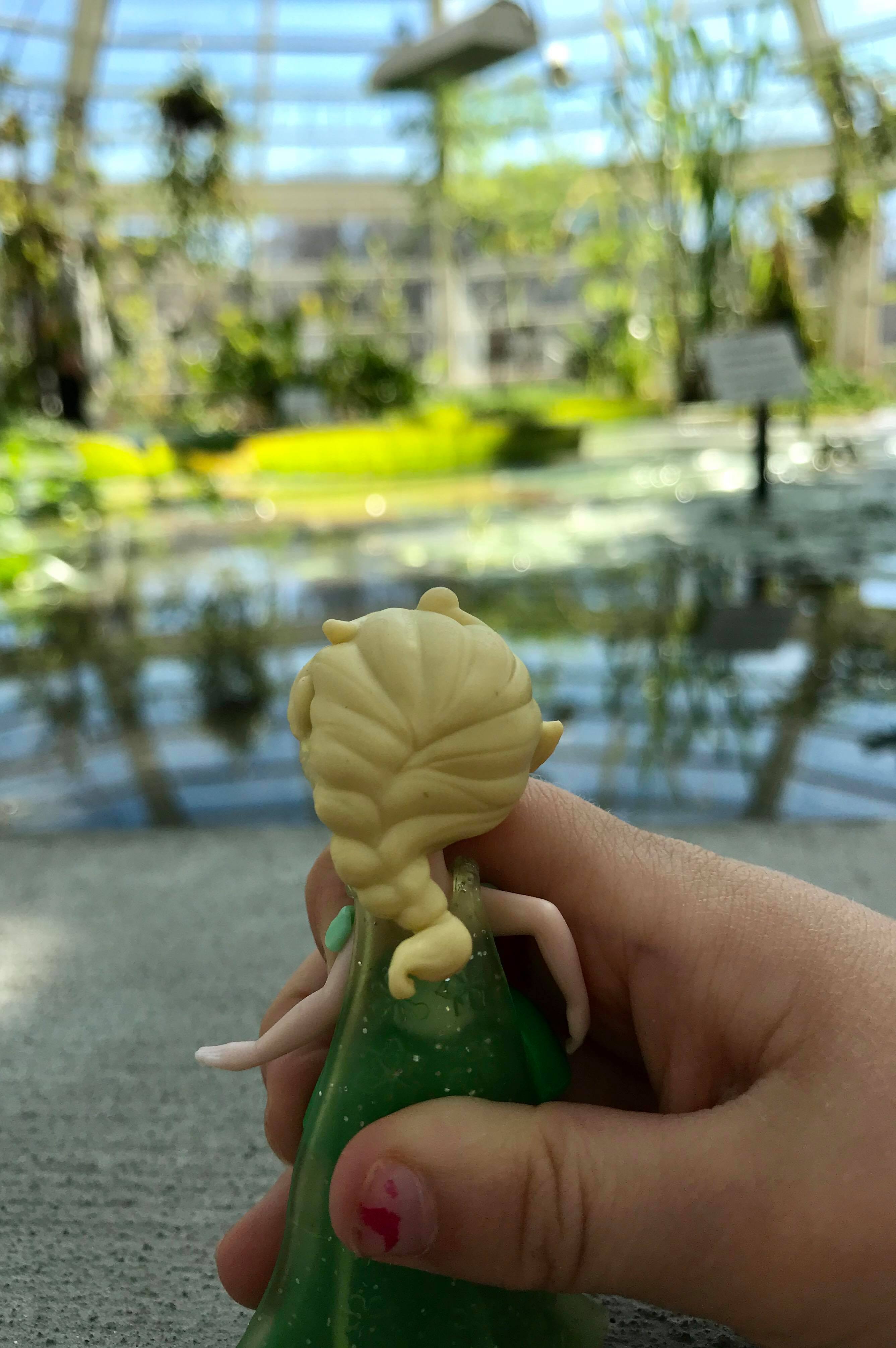 Lummehuone ei petä ja ylittää odotukset. Ihastelemmme vedenpällä kelluvia jättiläislumpeita ja muita erikokoisia lumpeenlehtiä sekä lummealtaan kasveja välillä penkillä istuen, välillä altaan reunalla ihmetellen. Lummehuoneen tunnelma on ihana ja äänimaailma miellyttävä. Lummealtaaseen tosiaan sopisi sammakko sukeltelemaan, jonka puutetta aulan vahtimestari oli meille ehtinyt pahoitella, prinsessa löytyy onneksi museokaverin taskusta. Hetken ihmettelyn jälkeen jatkamme matkaa, mutta ehdin luvata että palaamme tänne vielä monta kertaa ja tulemme katsomaan lumpeiden kukintaa. Jos lumpeiden näkeminen on teidänkin pienille se tärkein juttu, kannattaa huomioida että lumpeet ovat näkyvillä valoisina kuukausina ja loppukesästä suurimmillaan.