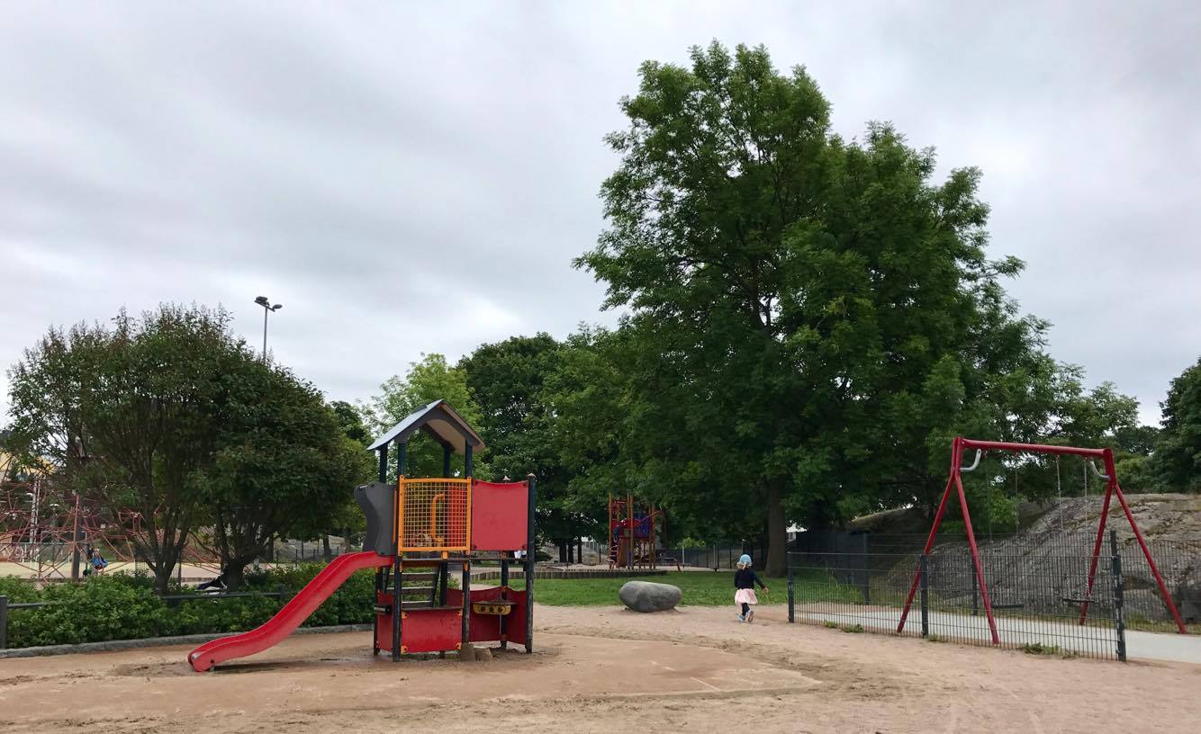 - Suuri hiekkalaatikko (hiekkalelut käytössä puiston ollessa avoinna)