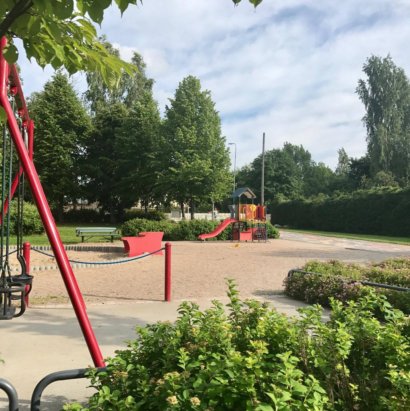 - Leikkipuistoa ei ole aidattu kokonaan, mutta se sijaitsee rauhallisella paikalla keskellä pientaloaluetta