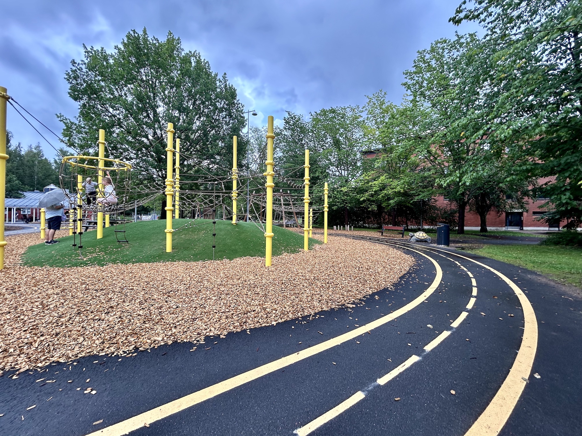 Pitkään remontissa ollut leikkipuisto Maunula avautui leikkijöille heinä-elokuun 2024 taitteessa. Vaikka vierailimme leikkipuisto Maunulassa ihan ensimmäistä kertaa sadesäässä, yllätti se meidät todella positiivisesti!