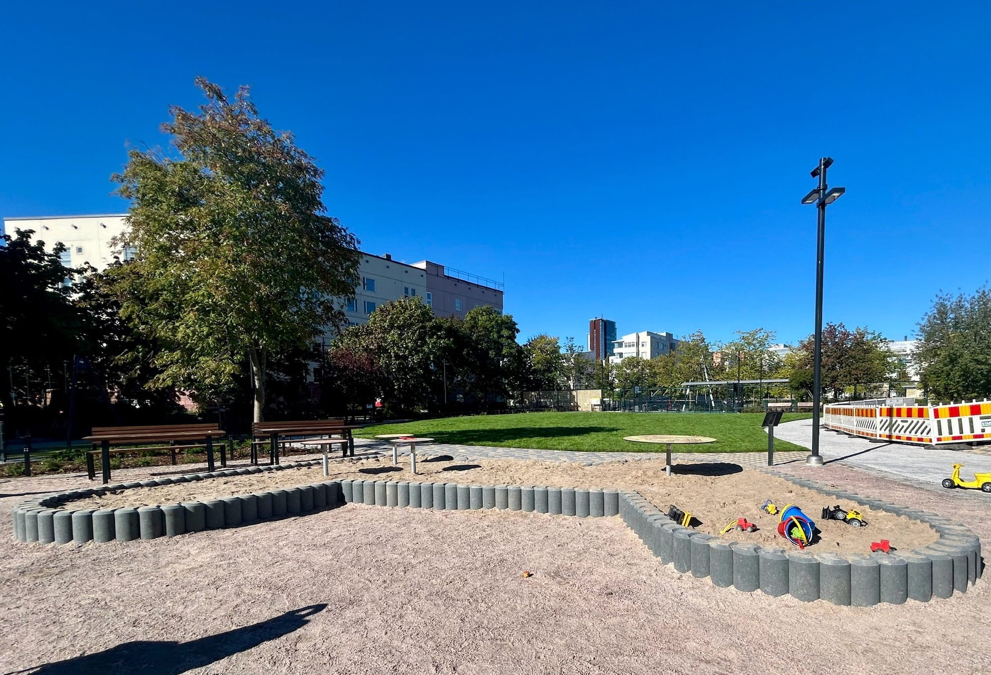 Kokonaisuus on kiva, leikkipaikka varmasti mainio lisä alueen puistoverkostoon ja sillä on ainutlaatuinen, erilainen ilme. Täällä kannattaa poiketa Helsingissä käydessään! Toiminnallisuuksia olisi voinut olla enemmänkin, mutta leikkipuistoon on näin jätetty tilaa luovuudelle ja mielikuvitukselle sekä laajoille istutusalueille. Ruoholahden leikkipuisto on aidattu, joka on hyvä lisä kun vieressä virtaa Ruoholahden kanava.