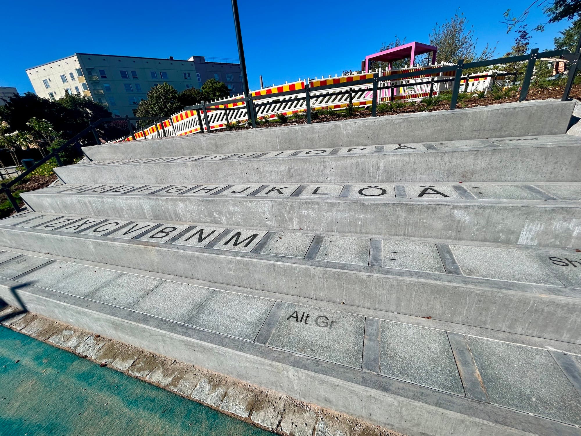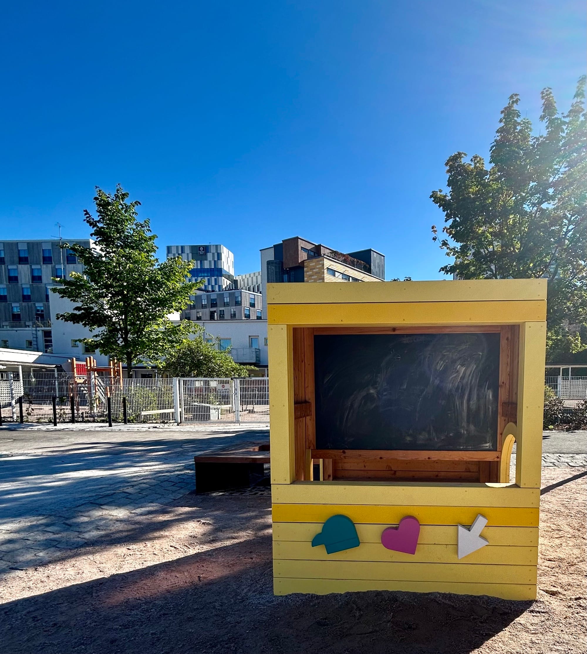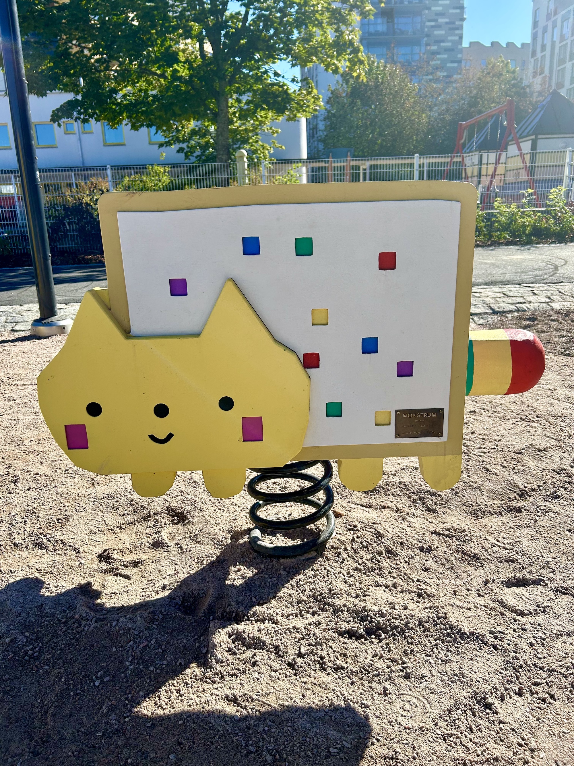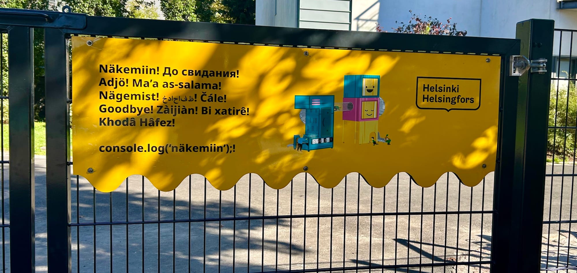 Muuten Ruoholahden tietokoneteemaisessa leikkipuistossa on hauskoja elementtejä ja värejä. Voit sukeltaa sisään näyttöön, tehdä hiekkakakkuja peliohjaimessa ja hypellä näppäimistössä. Ympäri puistoa on tauluja, joissa on puhelimille tarkoitettu QR-koodi, josta aukeaa lisätietoja ja tehtävä.