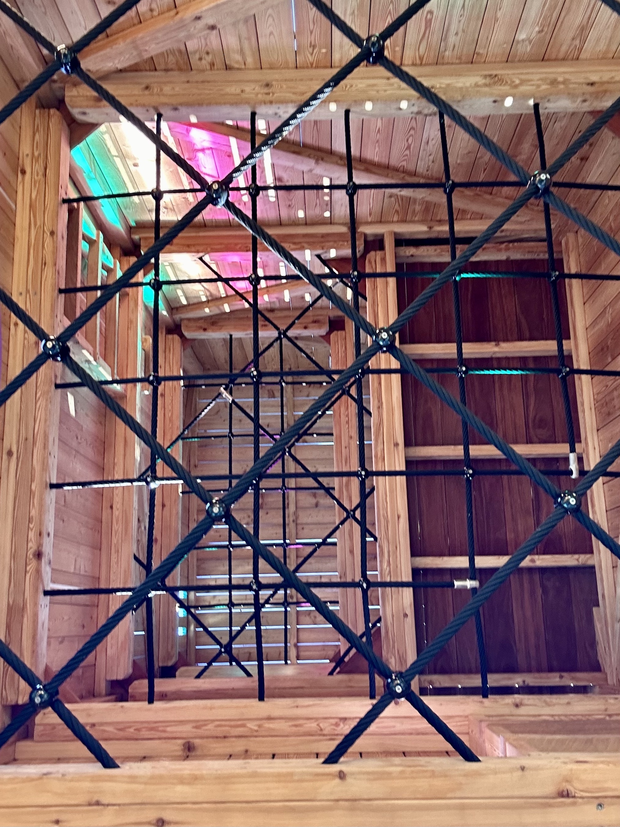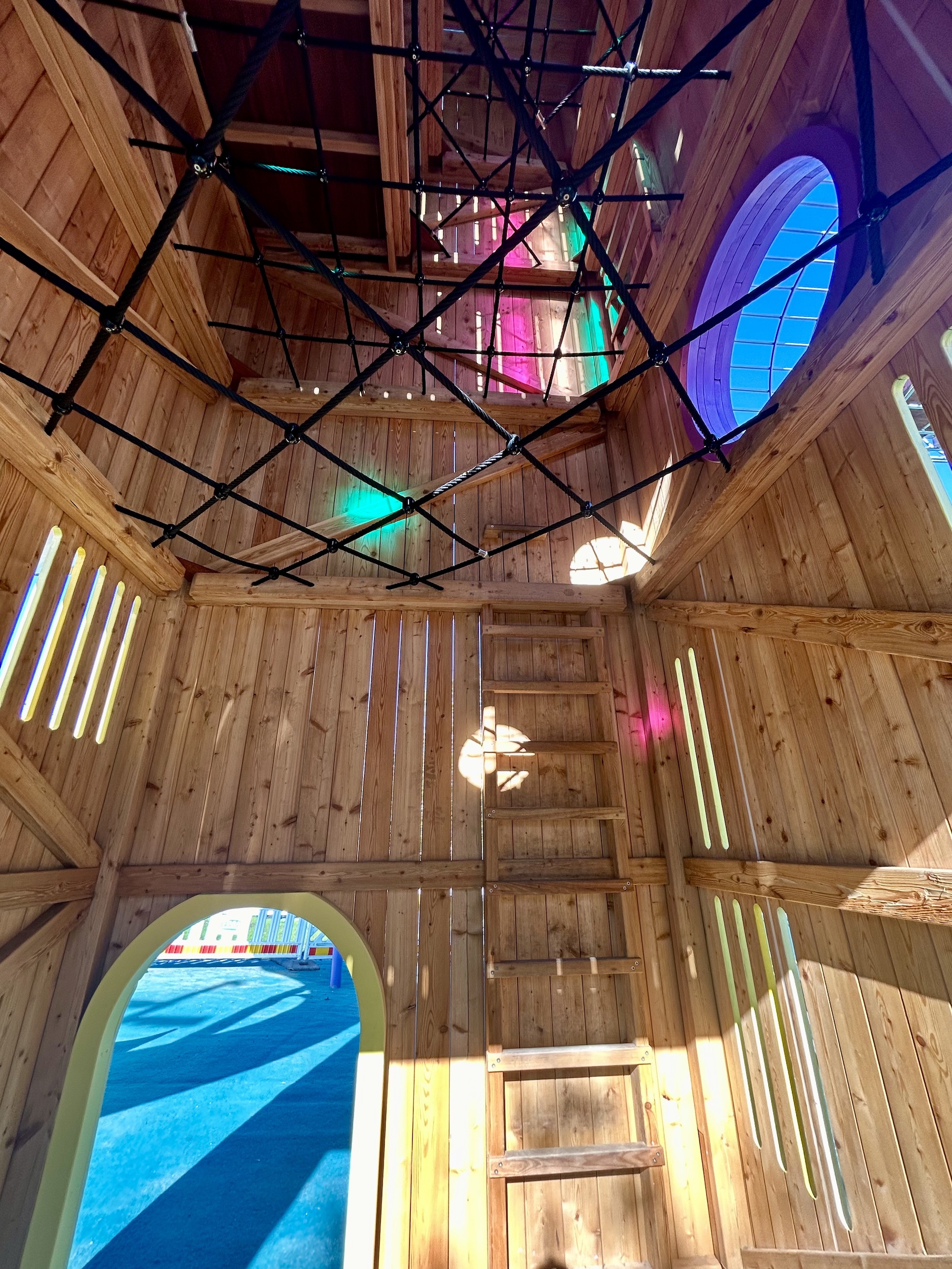 Ruoholahden leikkipuiston näyttävin elementti on korkea kiipeilyteline ja liukumäki, jonka on valmistanut tanskalainen Monstrum. Pääosa muistakin leikkipuiston välineistä on Monstrumin valmistmia ja juuri tähän leikkipuistoon suunniteltuja. Korkea liukumäkitorni näkyy kauas ja houkuttelee leikkimään - eikä vastaava ole Helsingissä aiemmin nähty! Tässä kohtaa tulee kuitenkin pieni varoituksen sana ennen kuin joku lupailee huikeaa leikkipuisto-elämystä pienemmille ja korkeita paikkoja välttäville: suuri kiipeilyteline-liukumäkihässäkkä on todella korkea ja haastava! Putkiliukumäkeen päästäkseen pitää kiivetä melkoinen matka kohtisuoraan ylöspäin narujen varassa, joten tämä kannattaa huomioida kun myy ideaa leikkipuistoseikkailusta erityisesti pienemmille. Muuta isompaa liukumäkeä ei tässä puistossa ole, vain pienten puolelta löytyy hyvin hyvin pieni.
