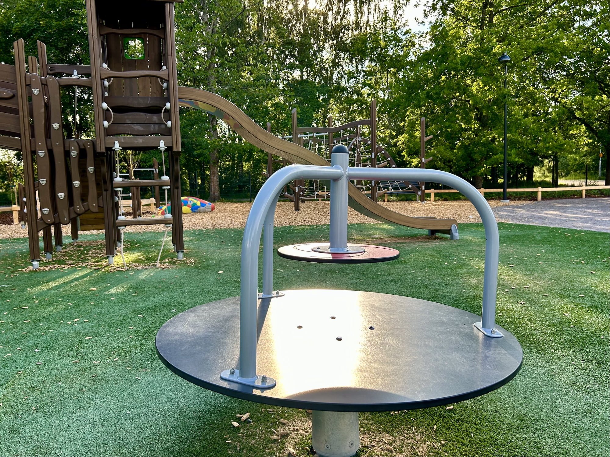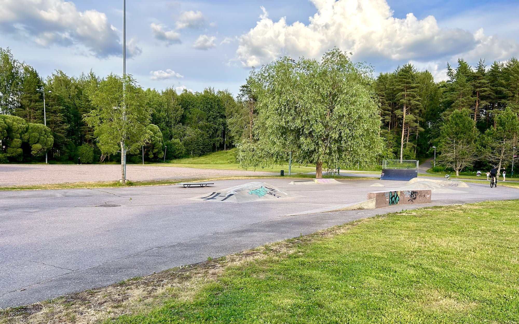 Ja vaikka leikkipuisto Trumpettia varjostavat osin puiston vanhat ja hienot puut, olisi varjopaikoille tai katosratkaisulle ollut tässäkin puistossa tilaa ja tarvetta.