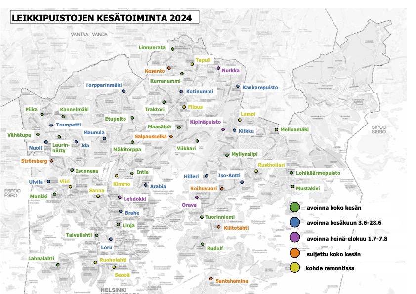 Ajalla 1.7.-7.8.2024 avoinna olevat leikkipuistot: