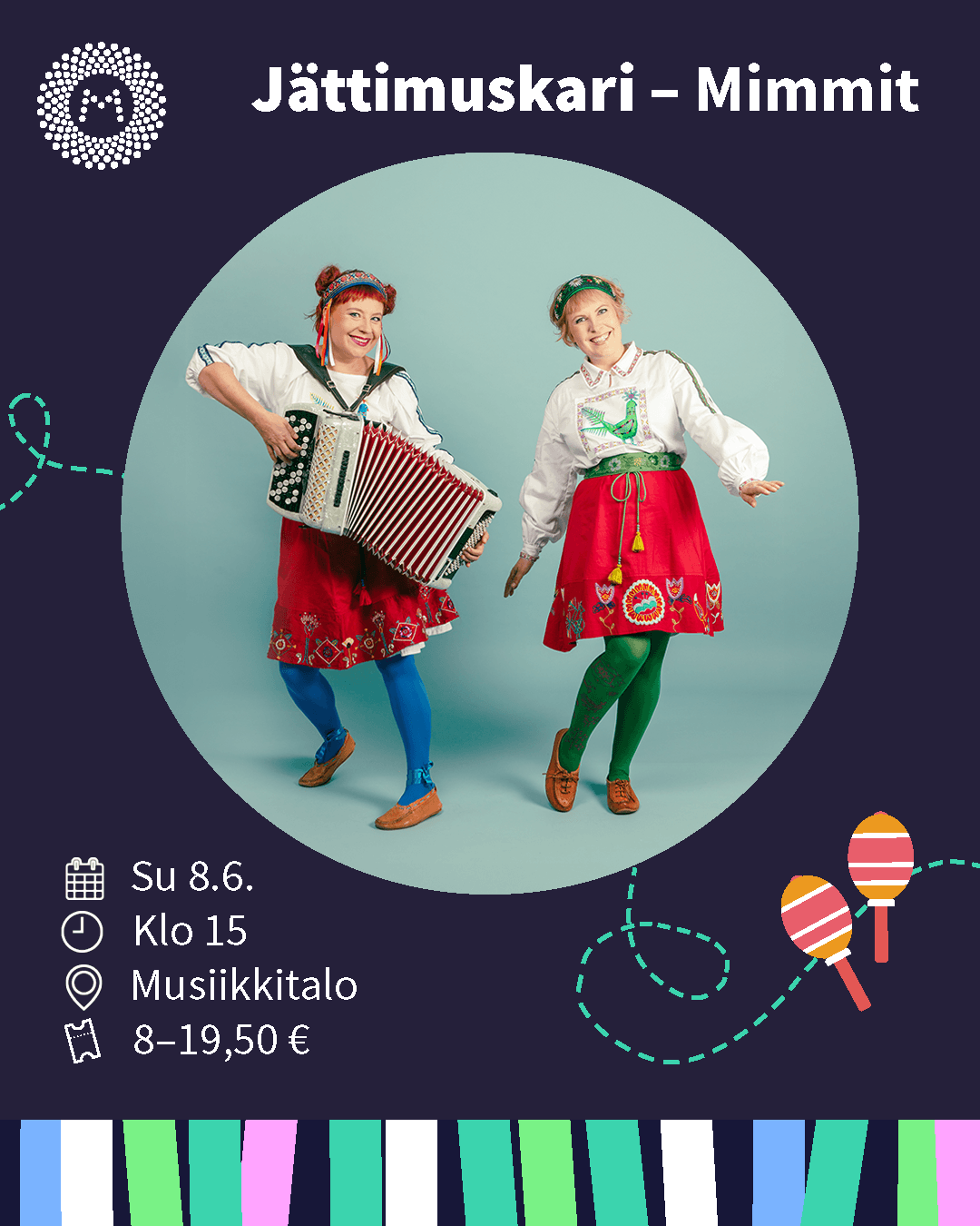 Jättimuskari Mimmien johdolla Musiikkitalon suuressa konserttisalissa sunnuntaina klo 15.
