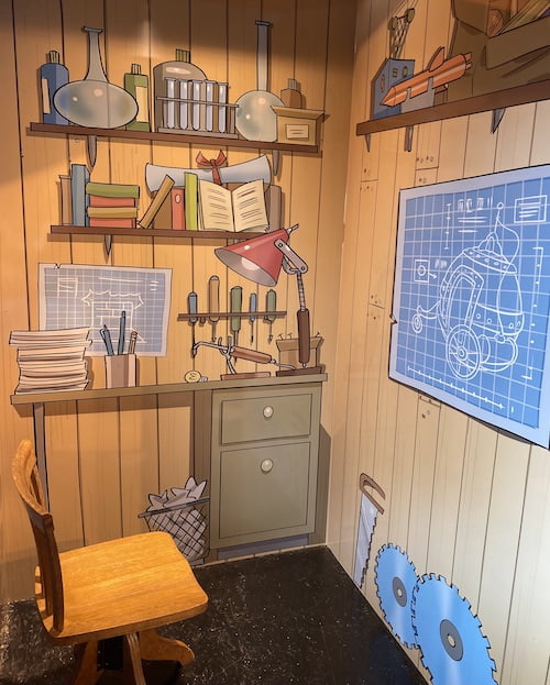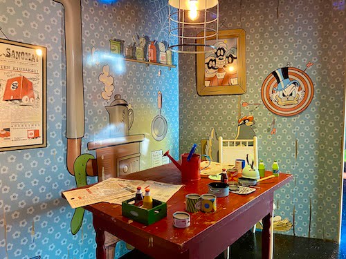 Näyttelystä löytyy jotain vanhaa tuttuakin parin vuoden takaa: Pelle Peloton – maailman pelottomin keksijä -näyttelyssä sekä Ateneumissa nähty Aku Ankan auto viihdyttää pieniä museovieraita myös tässä näyttelyssä. Autolle oli arvatenkin jonoa, joten uusi kuva tästä hienosta klassikosta tietenkin unohtui ottaa.