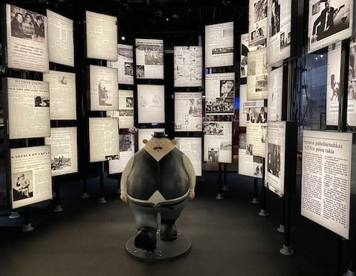 Päivälehden museon muihinkin näyttelyihin kannattaa tutustua: painokellarissa kierreportaiden päässä esillä on vanhoja painokoneita ja ladontatekniikkaa sekä lehtipöytä, jonka ääressä pääsee rauhoittumaan vaikka Aku Ankkaa tai Prinsessa-lehteä selaillen. Yläkerrasta löytyy uutisten ja tiedonvälityksen historiaa, hauskoja pilapiirroten hahmoja sekä lasten silmiin erikoisia koneita ja laitteita vitriinin lasin takana.