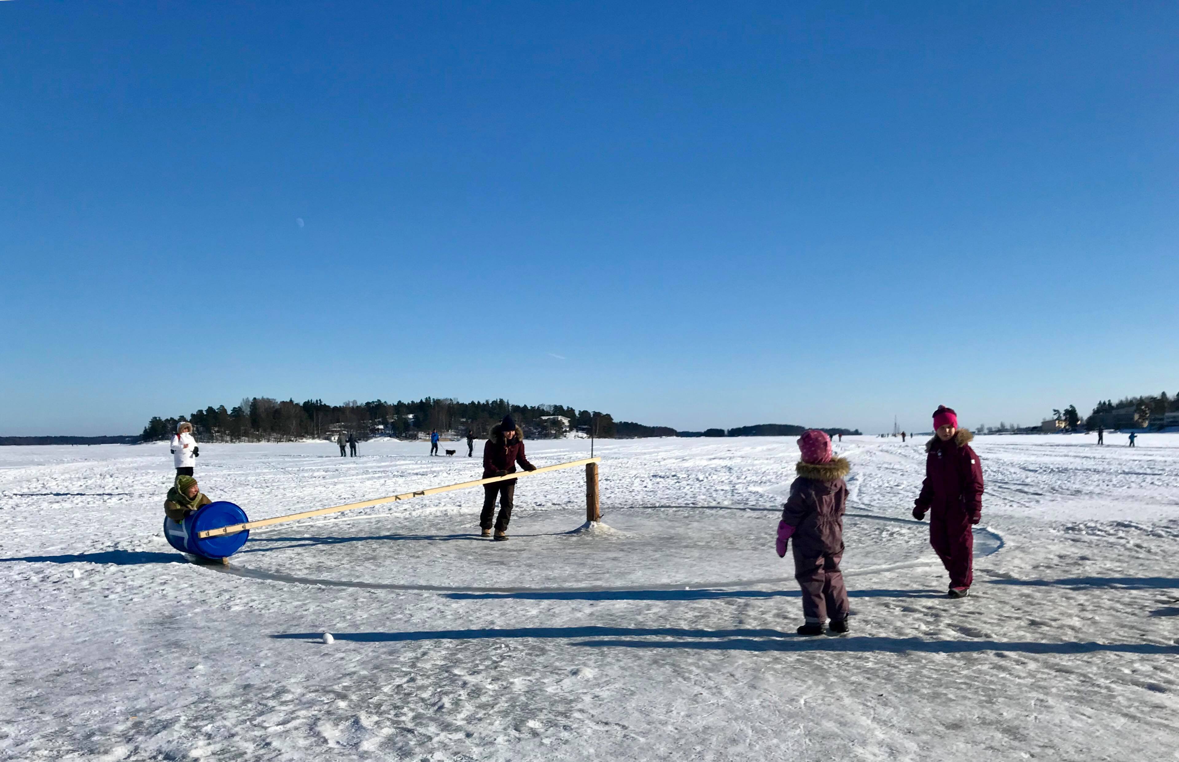 Laajalahdesta löytyy kaupungin toimesta aurattu matkaluistelurata merenjäältä.