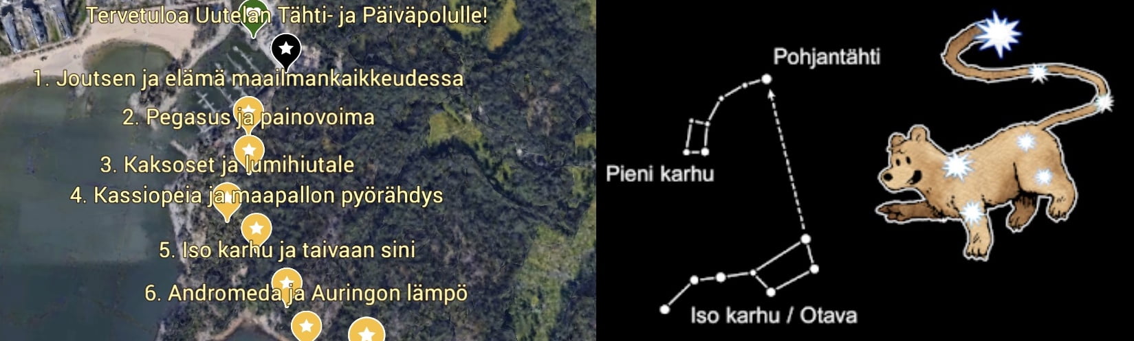 Uutelan Tähtipolku ja Päiväpolku 2021 opastavat taivaankannen ilmiöihin Uutelan rantareitillä